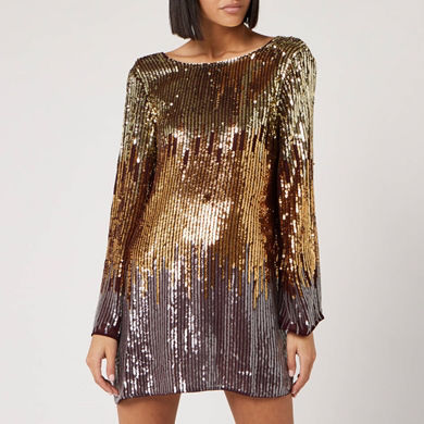 RIXO Women's Katie Dress - Klimt Eye Wave - Red Gold